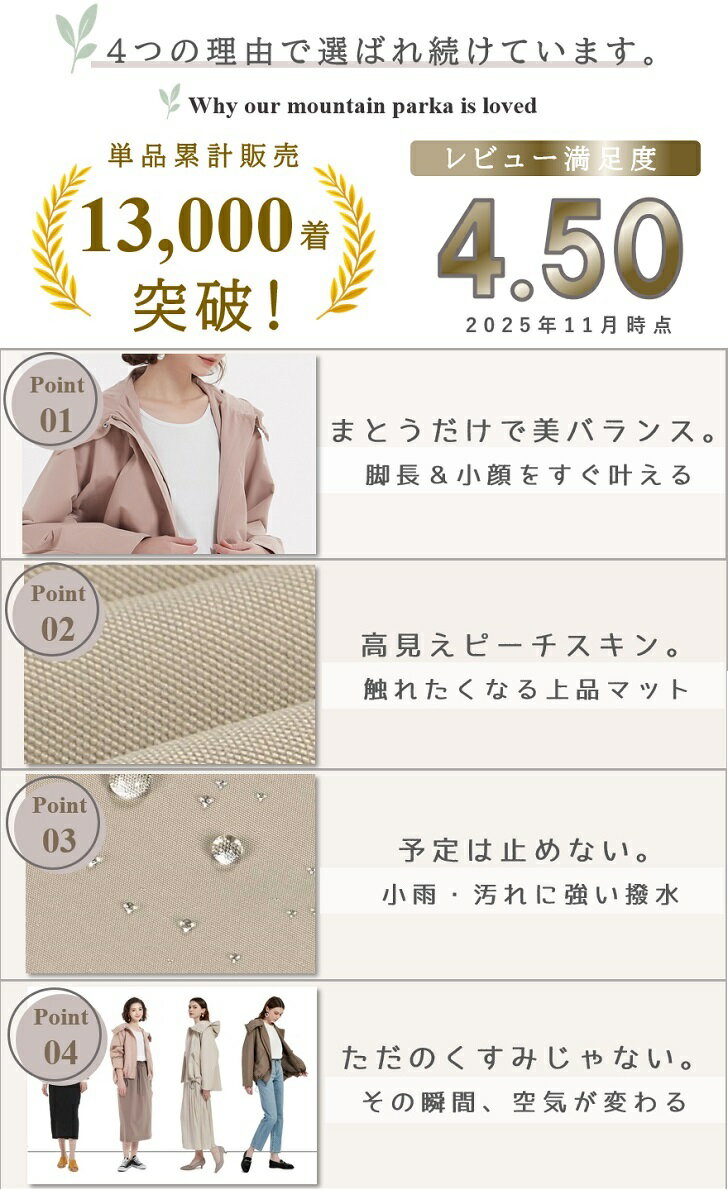 11/25まで!【6570円→4970円~】\ 撥水 × 高品質 で上品見え 大人のための マウンテンパーカー / レディース アウター ライトアウター パーカー 秋 秋口 マンパ ブルゾン ショート丈 羽織り スプリングコート 大きいサイズ はっ水 ジャケット lecielclair