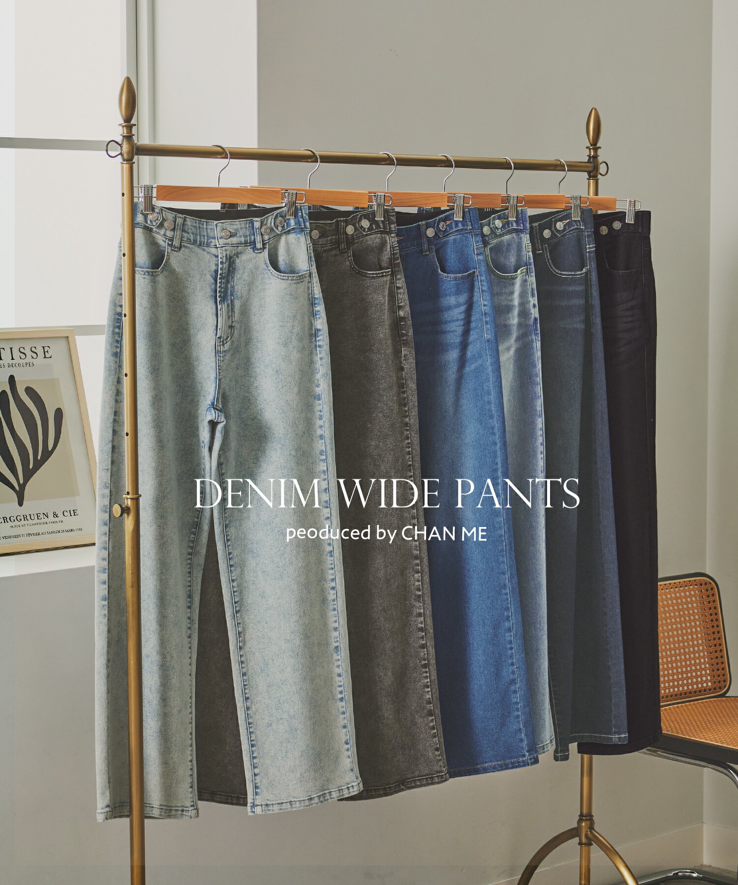 【2h限定!50%OFFクーポン配布中】 CHAN ME チャンミ ウエストボタンデニムワイドパンツ レディース 25秋冬 ストレッチ 全8色 ロング丈/ショート丈 XS/S/M/L/LL