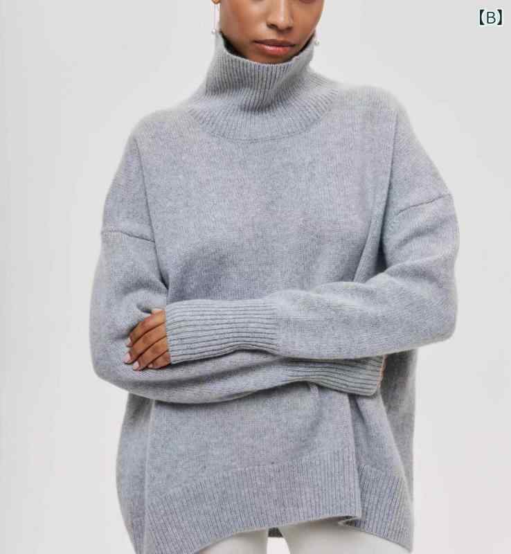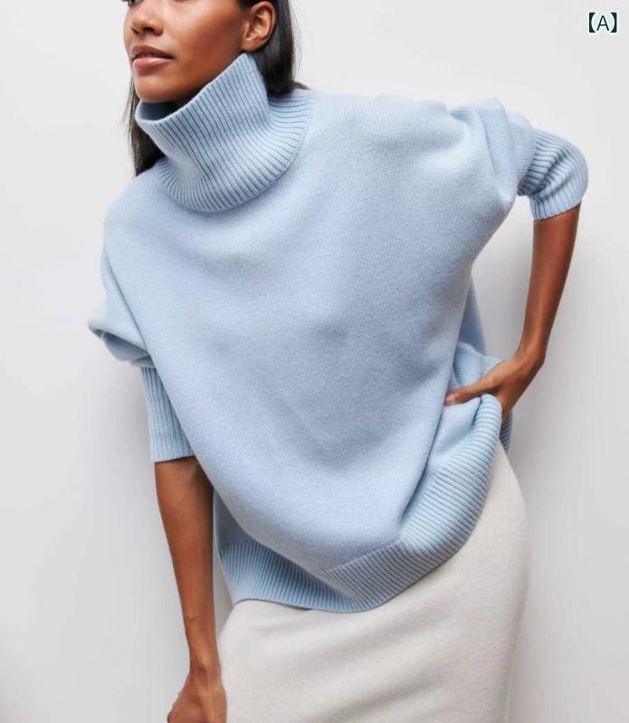 ニット レディース ハイネック セーター 無地 カシミヤタッチ ゆったり ルーズフィット 長袖 プルオーバー 秋冬 定番 通勤 オフィス カジュアル きれいめ 着回し 上品
