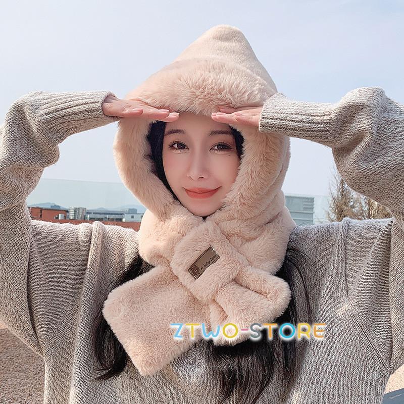ニット帽 耳当て マフラー付き 帽子 襟巻き 一体型 秋冬 スヌード レディース 小顔効果 大判