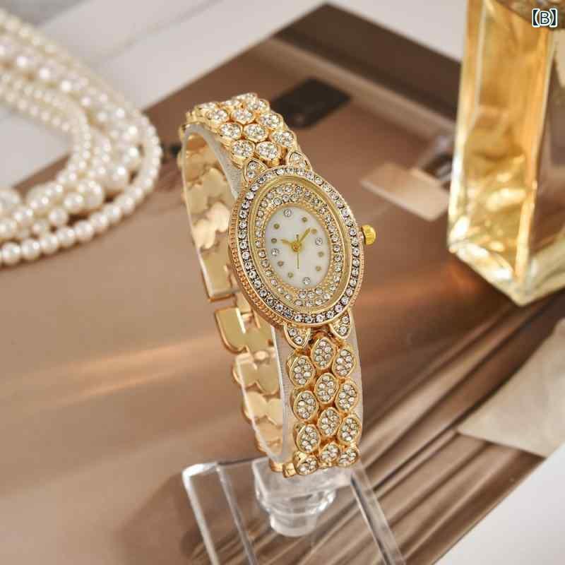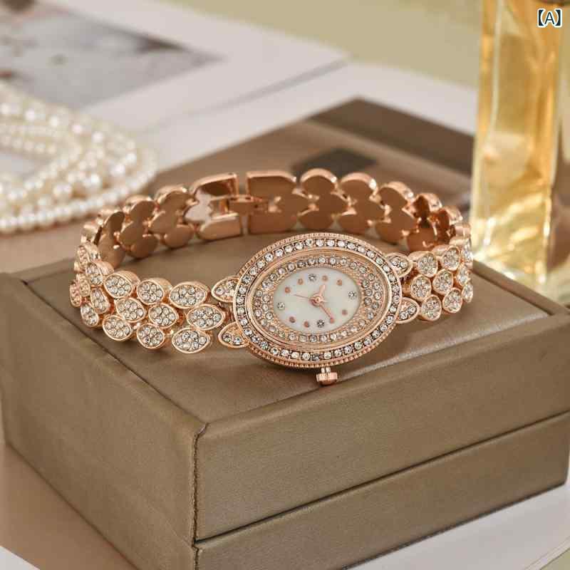 腕時計 レディース ガールズ ウォッチ ファッション アクセサリー ブレスレット 楕円形 キラキラ ラインストーン 合金 ステンレス バンド ローズゴールドカラー ゴールドカラー シルバーカラー