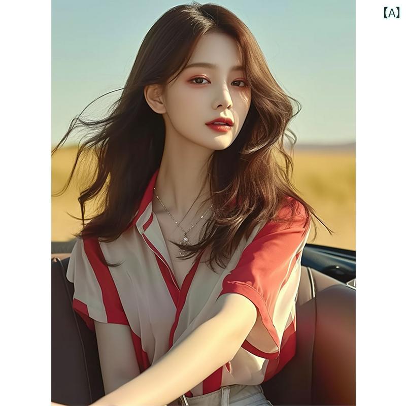 秋服 レディース ファッション オシャレ カワイイ シンプル 大人カワイイ 大きいサイズ 秋 ソフト 韓国スタイル トップス スリミング レッド プリント シャツ