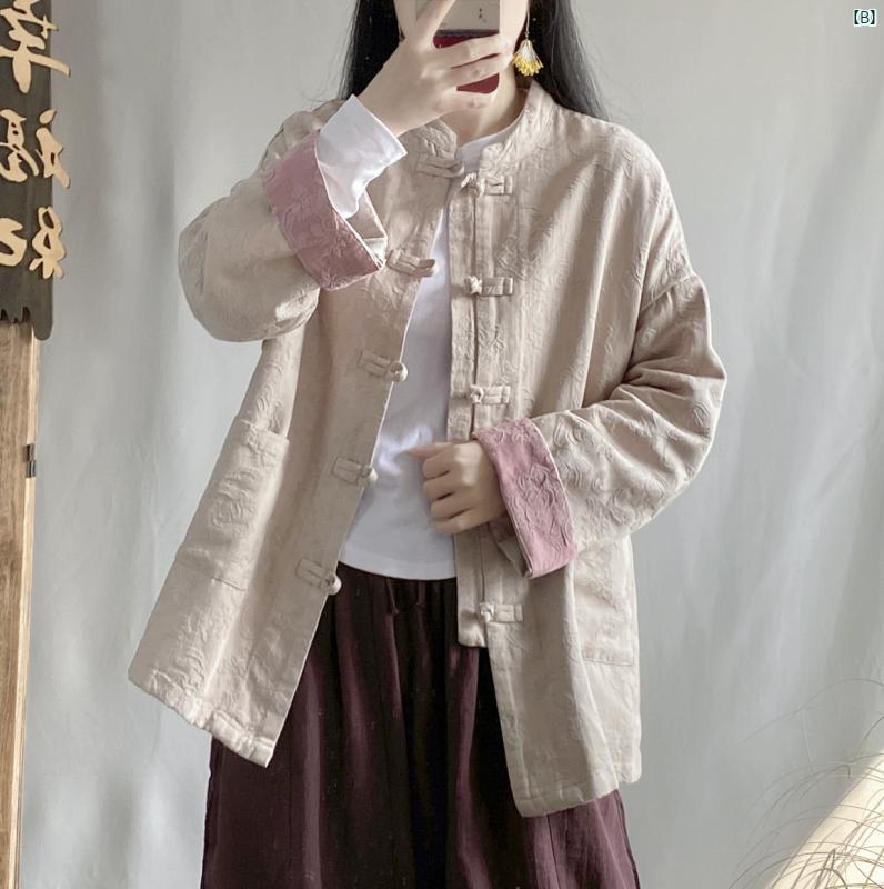 レディース 夏 コーデ ファッション 春 秋 中華風 唐 スーツ ボタン アップ トップ レディース 瞑想 ダブルブレスト 長袖 コットン リネンシャツ アンティーク ジャケット 秋