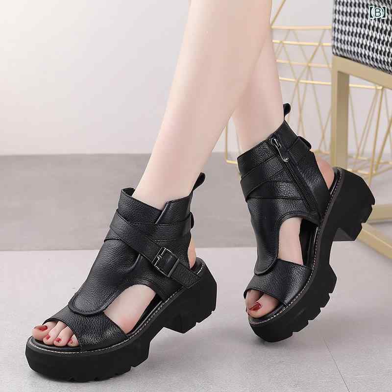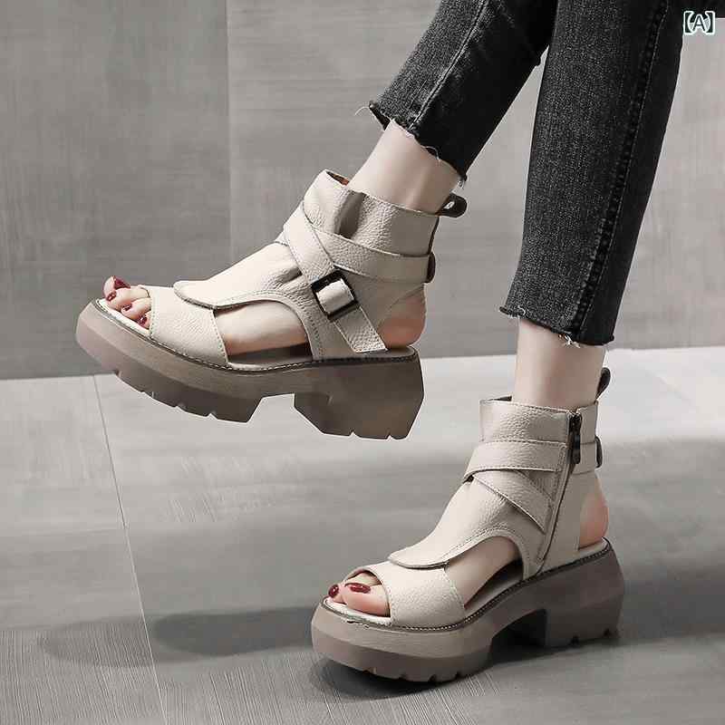 サンダル レディース 厚底 魚口 ストラップ ハイヒール 防水 ラウンドトゥ カジュアル 米白 黒 深棕色 PUレザー 春夏