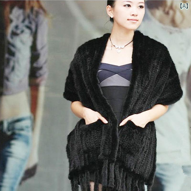 マフラー レディース 秋冬 ミンク ファー ショール 暖かい 毛皮 編み込み ブラック ブラウン 防寒