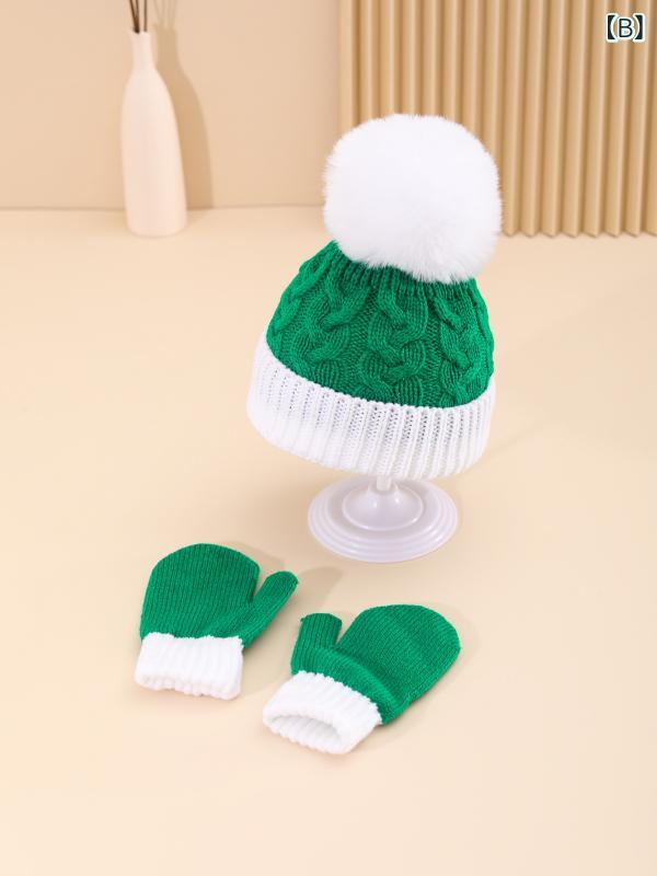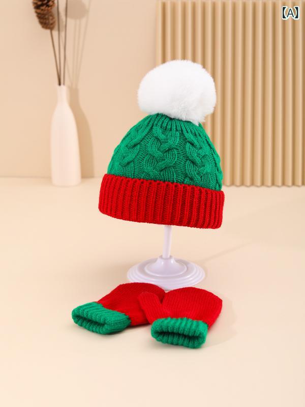 キッズ 帽子 手袋 冬 クリスマス サンタ帽 ニット帽 ニット手袋 2点セット 保温 あったか 裏起毛 厚手 アクリル 防寒 ボーダー柄 かわいい ユニセックス カジュアル(x2)