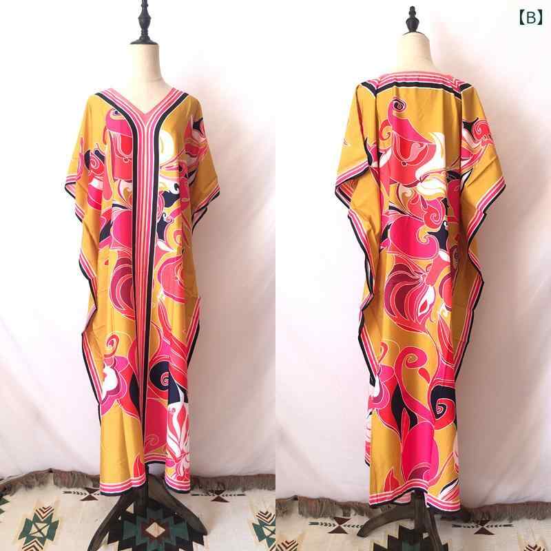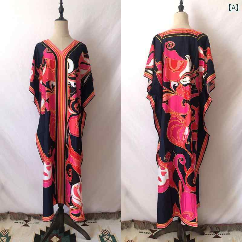 レディース ファッション 服 オシャレ カワイイ 女性用 シンプル レトロ スクエアスカーフ プリント ドレス リゾートスタイル ロング スカート ローブ シーサイド ビーチ
