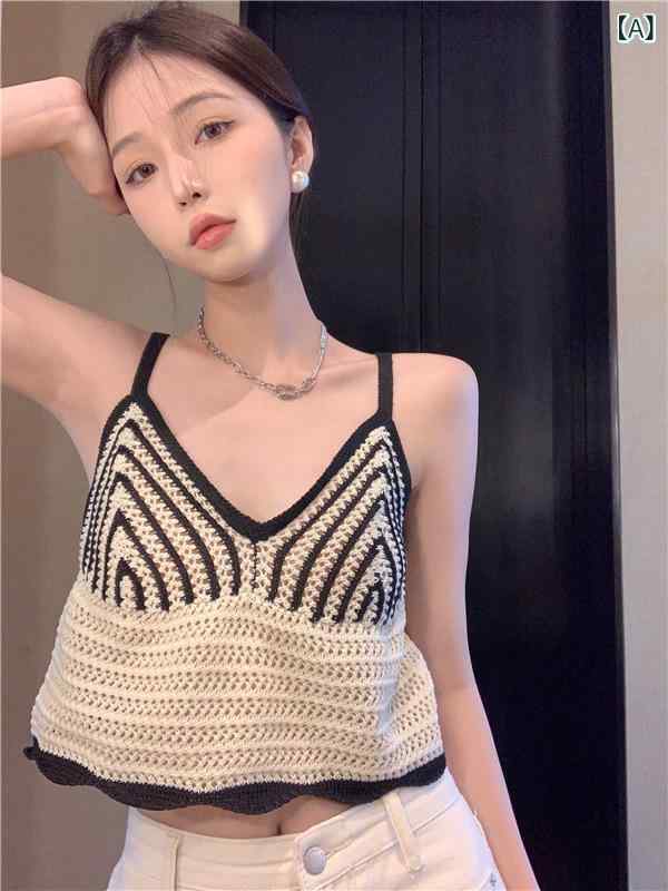 タンクトップ レディース ユニーク 甘辛 セクシー キャミソール レイヤード 透かし編み ショート丈 クロップド丈 デザイン トップス 春夏