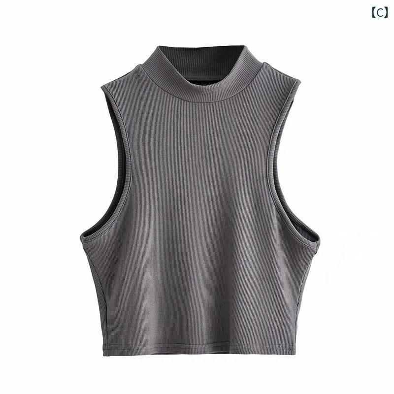 トップス レディース アメリカ 小さい タートルネックノースリーブ ベスト 女性 ジャズ ダンス スタイリッシュ ガール スリム 魅惑的 ショート クロップ
