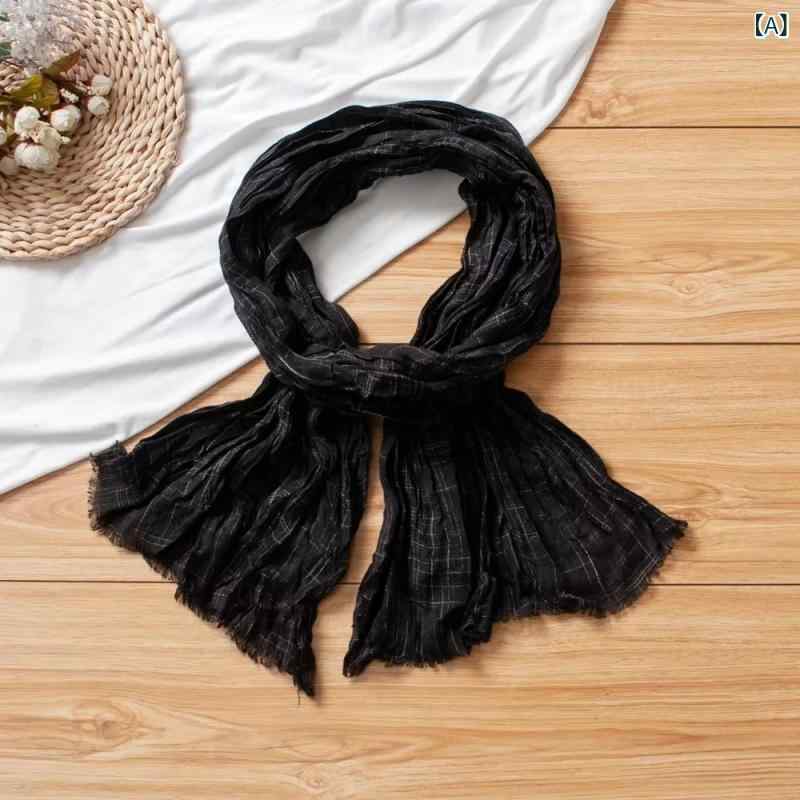 マフラー ショール レディース 秋冬 綿麻 チェック柄 ミディアム丈 ストール 森ガール レトロ あたたかい ブラック ベージュ ワインレッド カーキ2