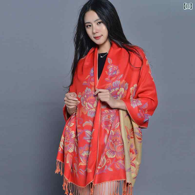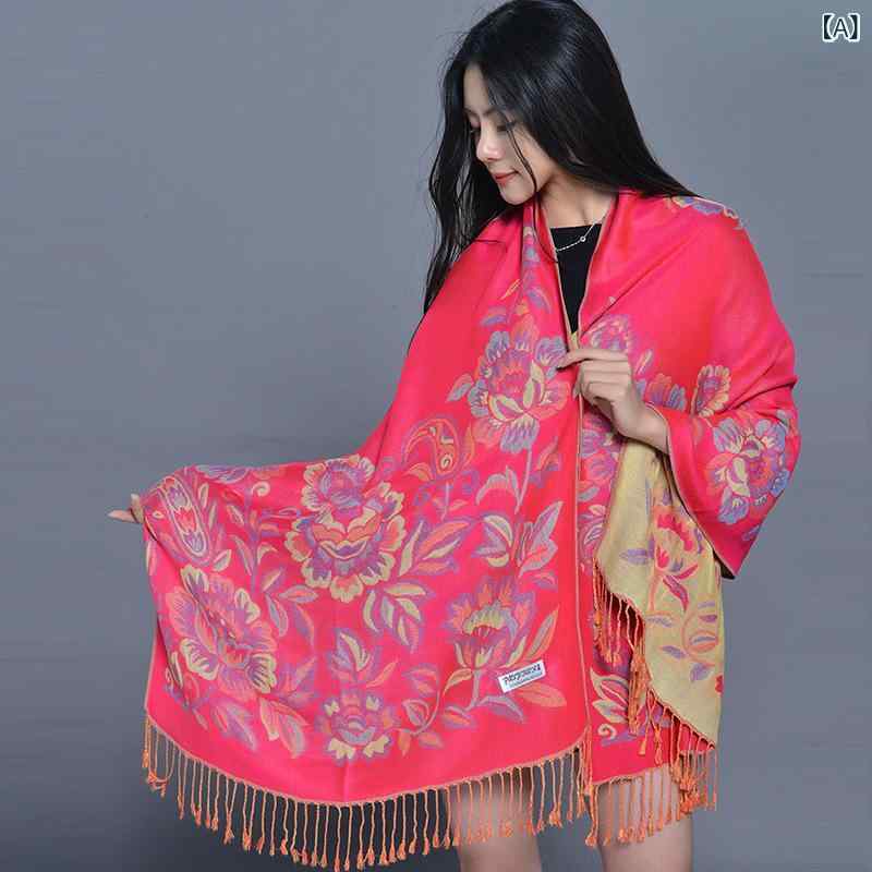 ストール レディース 民族風 エスニック ジャガード織り 厚手 保温 防寒 旅行 トラベル 冷房対策 ショール マフラー 2WAY 超大判 ロング 綿 コットン 秋冬