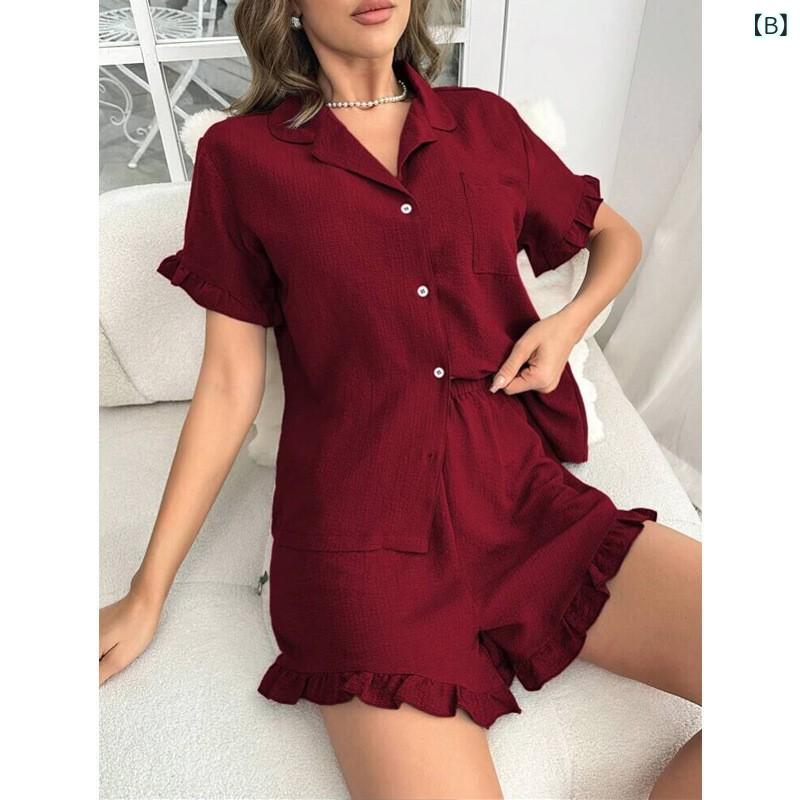 パジャマ レディース 春夏 部屋着 ワンマイルウェア 半袖 ショートパンツ 2点セット アシンメトリー テーラードカラー 前開き 欧米風 快適 通気性 涼感