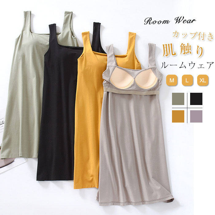 【送料無料】インナーワンピースとして、またルームウエアにもおすすめです。ショート丈で着まわしやすく、内蔵のブラカップがバストをしっかりサポート。