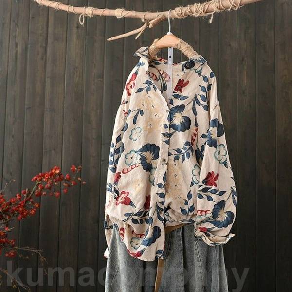 ガーゼ シャツ ガーゼシャツ レディース 秋 冬 花柄 襟 シャツ レディース トップス 長袖 30代 40代 送料無料