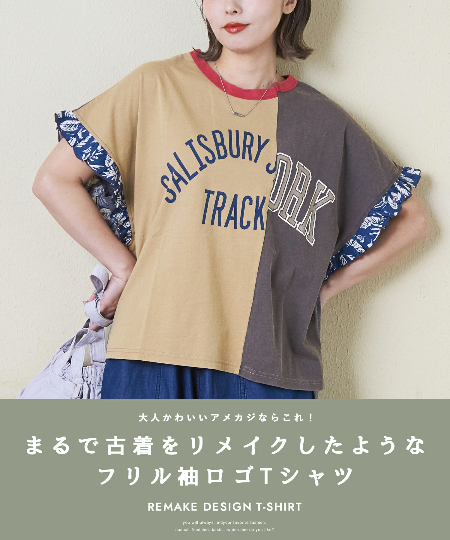 送料無料袖レース切り替えが魅力。Tシャツ 袖レース 切り替え 五分袖カットソー 5分袖tシャツ クルーネック ゆるtシャツ レース カジュアル レディース トップス 春夏 英字